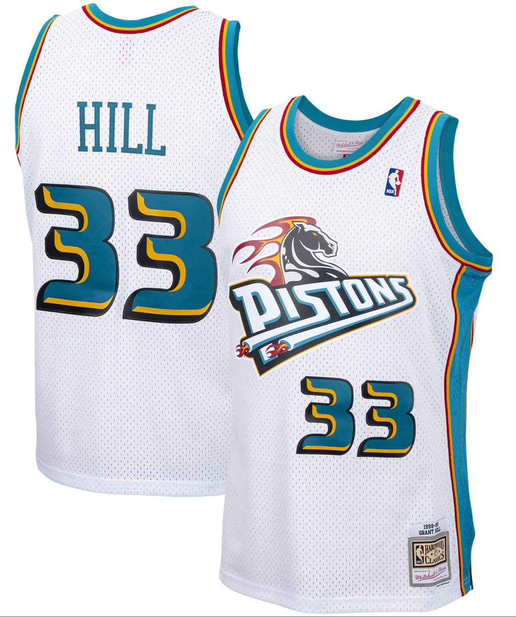 Men's Detroit Pistons Grant Hill Mitchell & Ness White 1998-99 Hardwood Classics Swingman Jersey