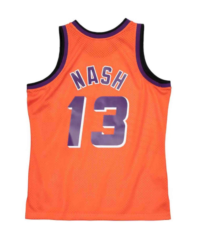 Represent the legacy of the Phoenix Suns with the Men's Steve Nash Hardwood Classics Reload 2.0 Swingman Jersey by Mitchell & Ness. Made of 100% polyester, this jersey features tackle twill applique graphics, side splits at the hem, and a droptail for added style. Officially licensed and true to size, this jersey is perfect for any Suns fan.