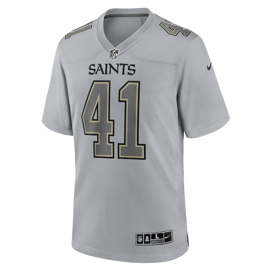 As an industry expert, introduce your love for the New Orleans Saints to your wardrobe with the Alvin Kamara Gray Atmosphere Fashion Game Jersey. Made using high-quality materials, this jersey boasts 100% polyester construction and a slim fit design. Show your support for your favorite team and player with this professional and stylish jersey.