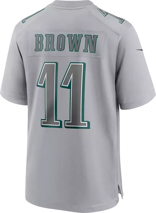 Experience game day like a true pro with the Philadelphia Eagles A.J. Brown Atmosphere Grey Game Jersey. Made with high-quality materials and designed to maximize performance, this jersey is perfect for any diehard fan. Show off your team pride and elevate your game with the ultimate jersey.