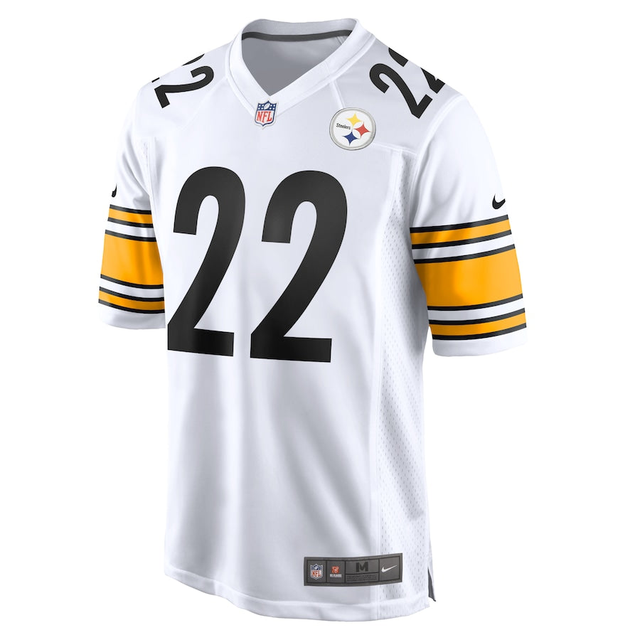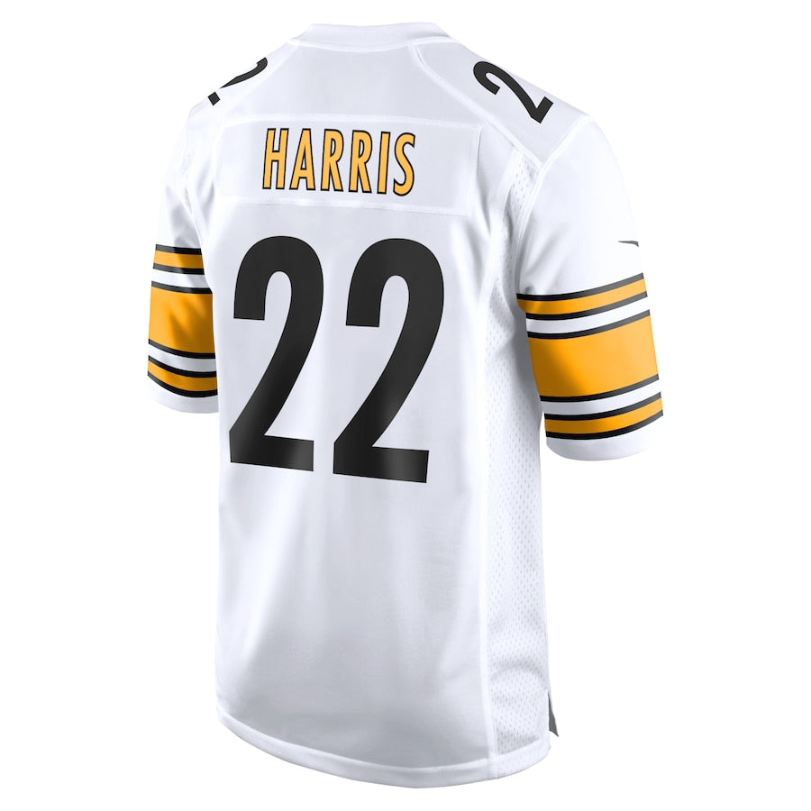 The Pittsburgh Steelers Najee Harris White Game Jersey is the perfect choice for any fan. Made with high-quality materials, this jersey boasts the team's signature design, ensuring you stand out on game day. With its comfortable fit and durable construction, this jersey is sure to be a game day essential.