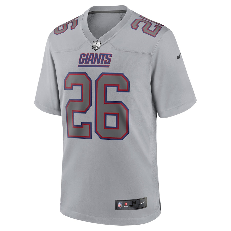 This Saquon Barkley Gray New York Giants Atmosphere Fashion Game Jersey combines style and performance for a winning look on and off the field. Made with breathable fabric and featuring the official team logo, this jersey will keep you cool and showcase your support for your favorite team.