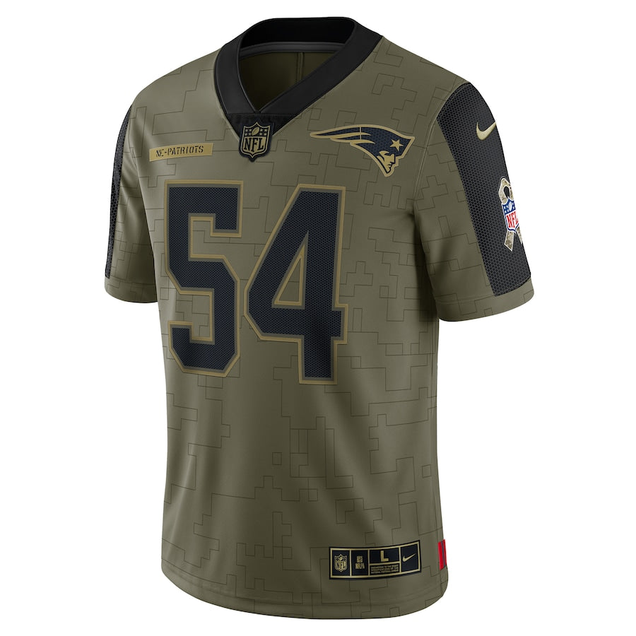 Show your support for the New England Patriots while also honoring our nation's military with the Tedy Bruschi Olive 2021 Salute To Service Limited Player Jersey. Made with high-quality materials, this jersey features team and player details, while also donating a portion of proceeds to the NFL's military non-profit partners.