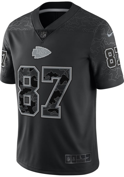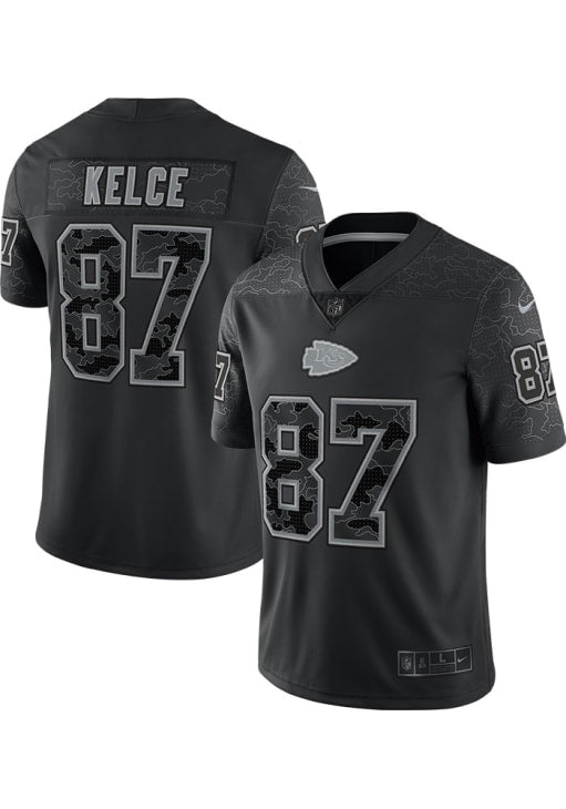Experience the ultimate in comfort and performance with the Travis Kelce Kansas City Chiefs Black REFLECTIVE Limited Football Jersey. Featuring reflective material for enhanced visibility and Kelce's name and number on the back, this jersey showcases your team spirit while keeping you safe on the field. Crafted with high-quality materials, this limited edition jersey ensures maximum durability and style. Get yours now and be game-ready!